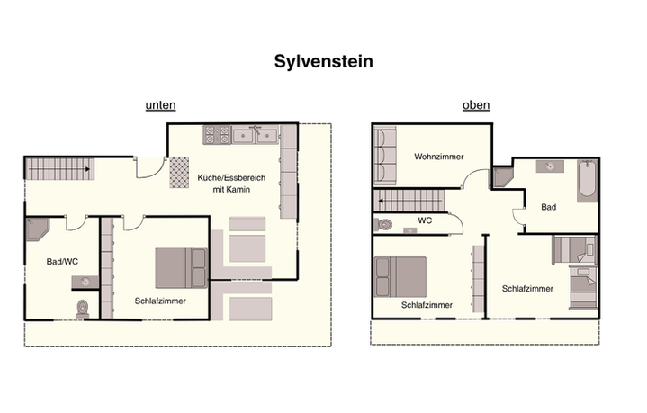 Die beiden eleganten Bäder und eine zusätzliche Toilette bieten Komfort und Bequemlichkeit für die ganze Familie oder eine Gruppe von Freunden. Als besonderes Highlight ist die Holztreppe zu erwähnen, die beide Stockwerke der Ferienwohnung auf harmonische Weise miteinander verbindet. Jedes Detail der Inneneinrichtung wurde mit Liebe zum Handwerk gestaltet, und die Schreinerarbeit spiegelt sich in jedem Raum wider.